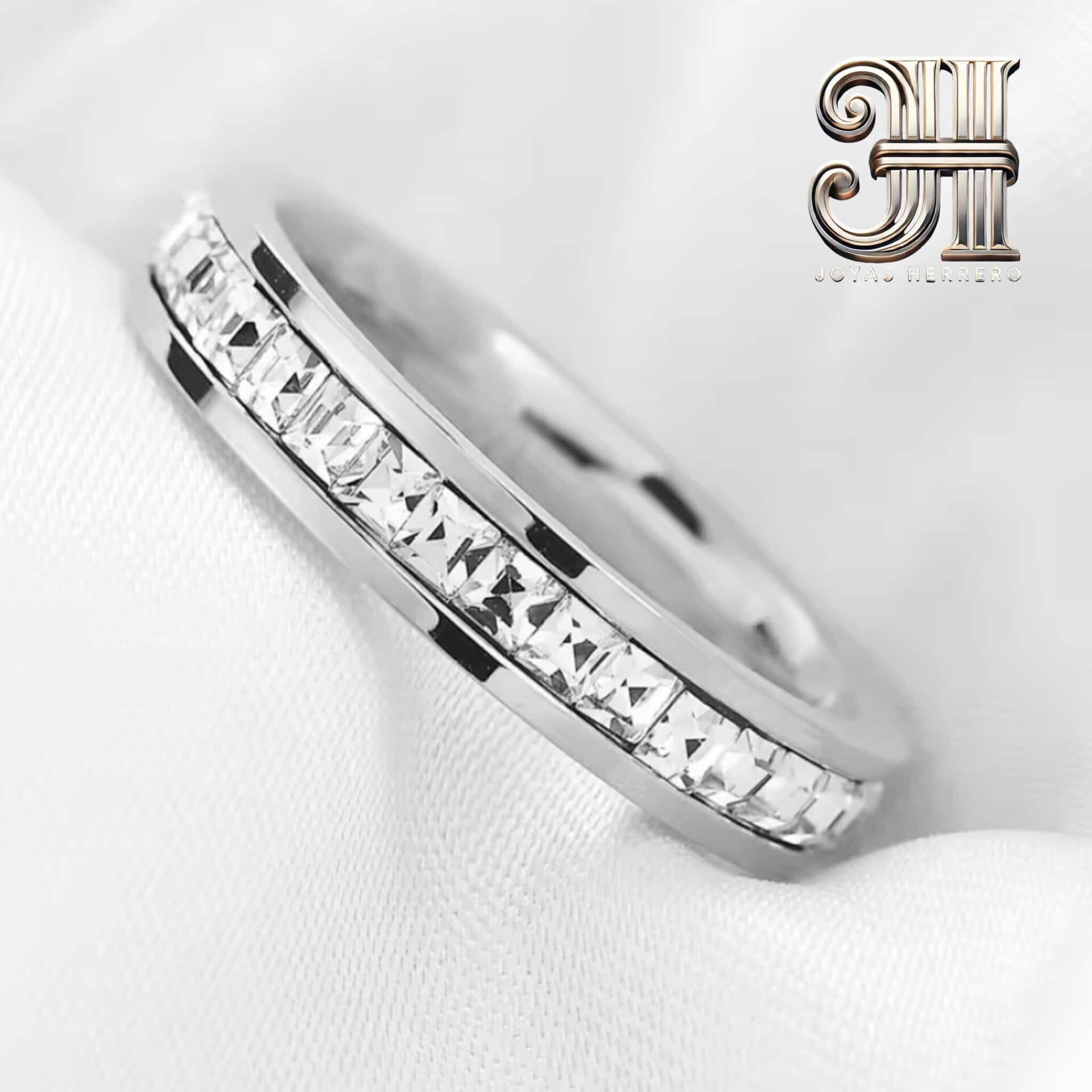 Alianza Eternidad con Cristales Baguette en Acero Quirúrgico Chapado en Oro Blan