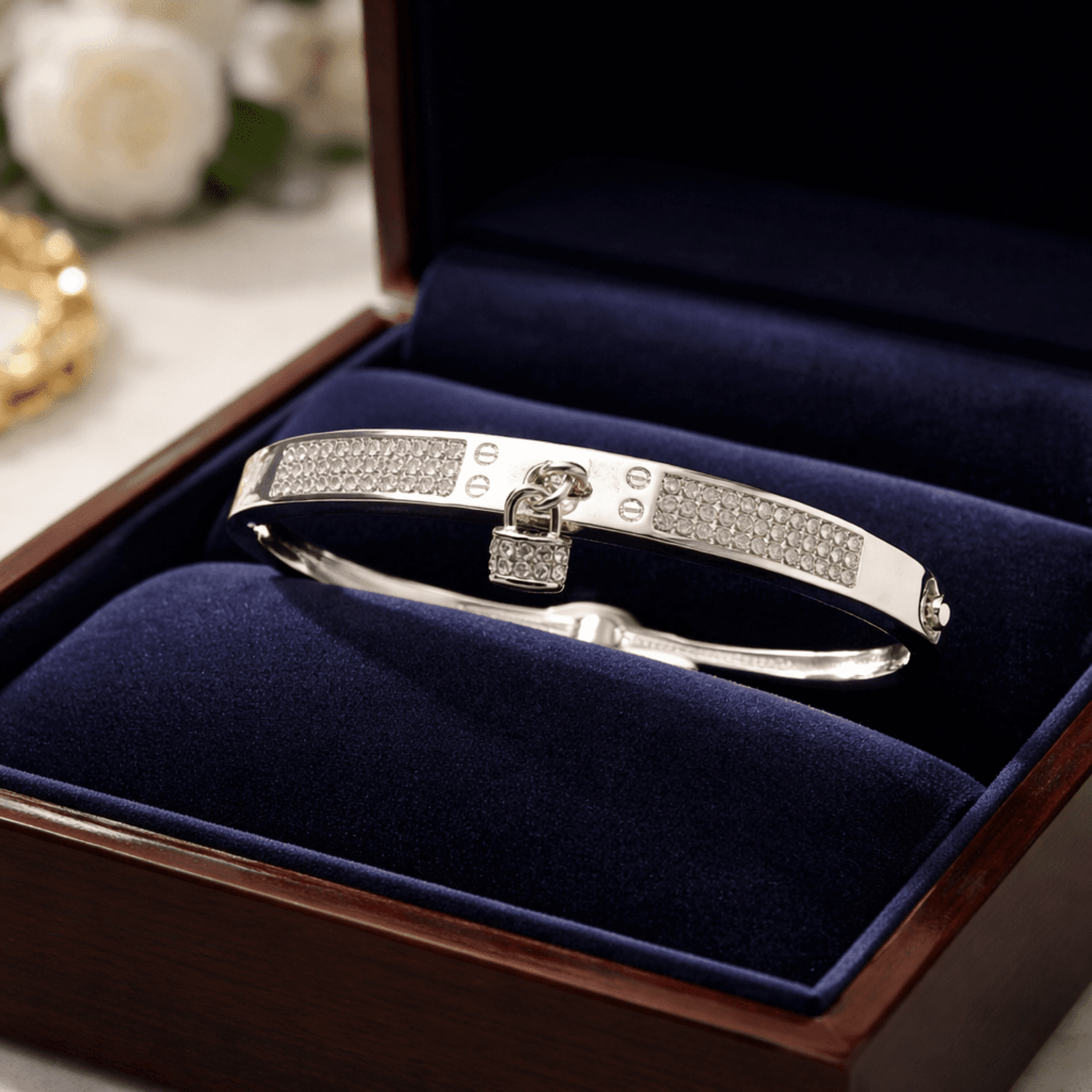 Pulsera de Acero Quirúrgico con Circonitas y Candado