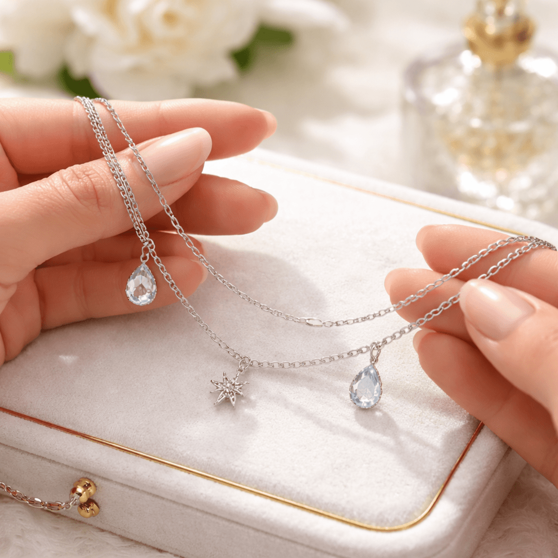Pulsera - Tobillera de acero 316L con estrella y gotas de cristal