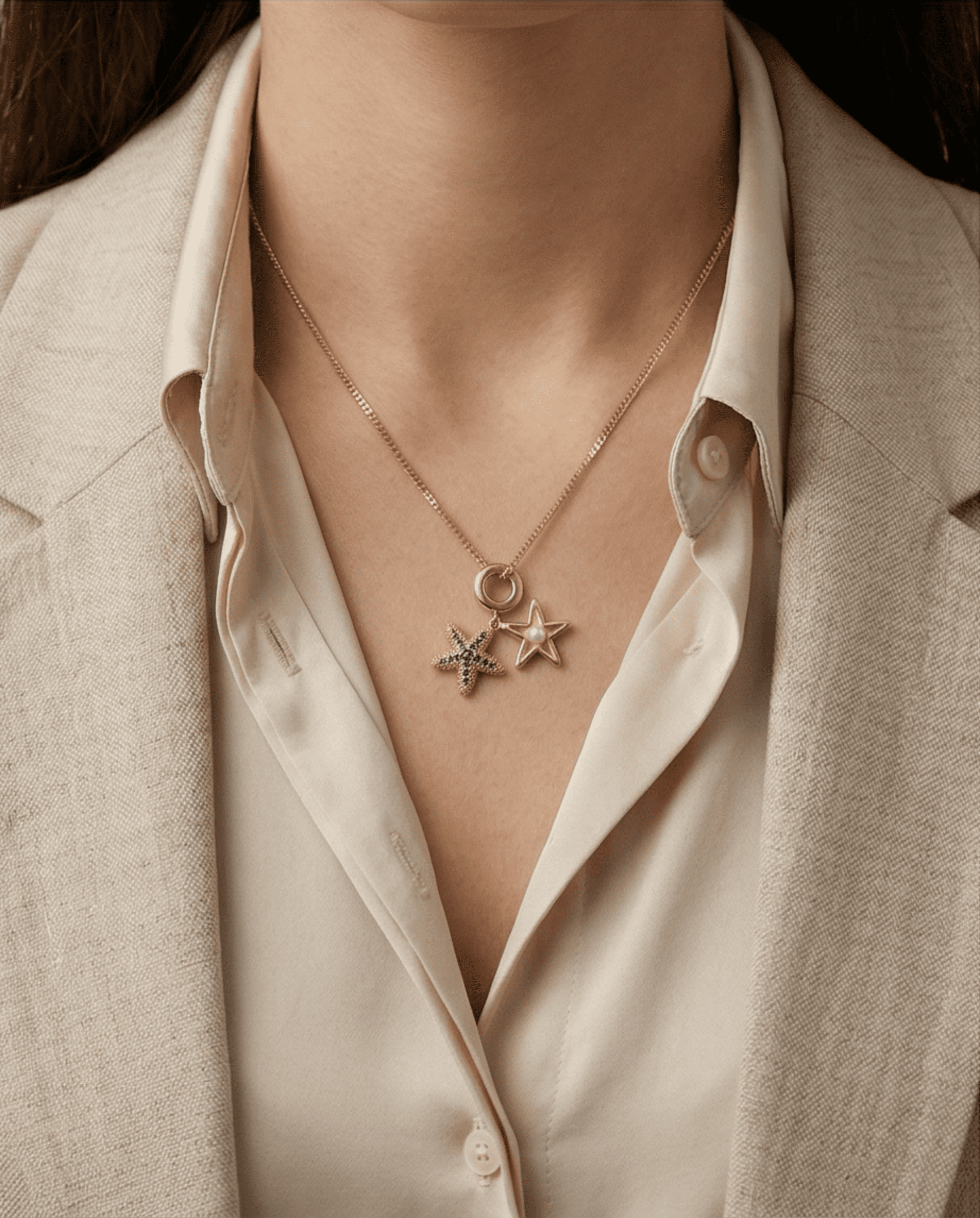 Gargantilla Estrellas del Mar - Acero Dorado con Circonitas y Perla