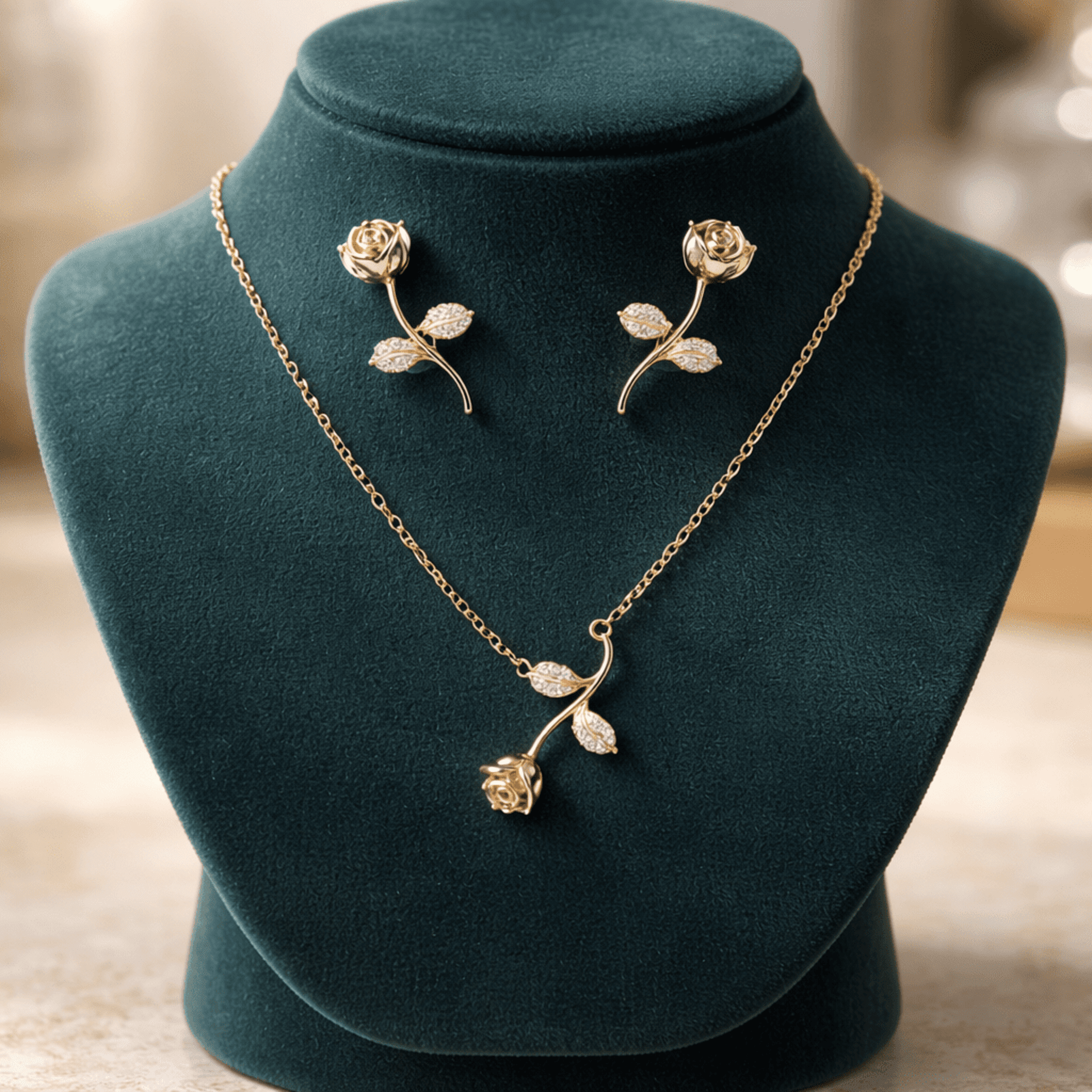 OfertaConjunto Rosa Romántica: Collar + Pendientes en Oro 18K – Acero Quirúrgico con C19,95 €39,95 €−50%