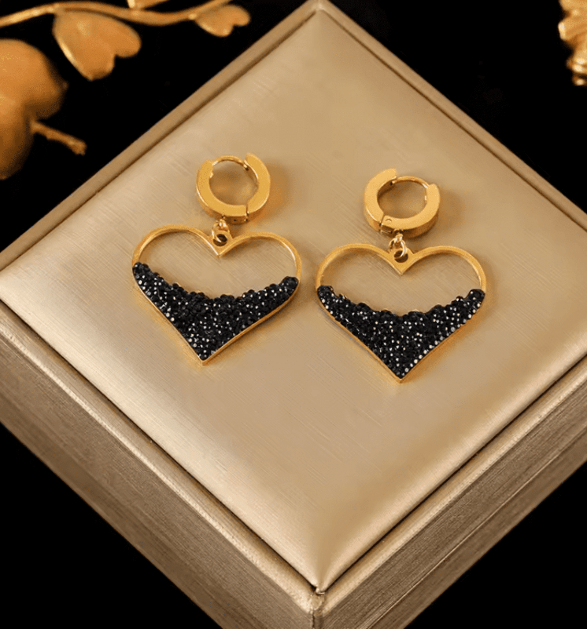 Pendientes Corazón Dorado con Detalles Negros – Colección Nocturna